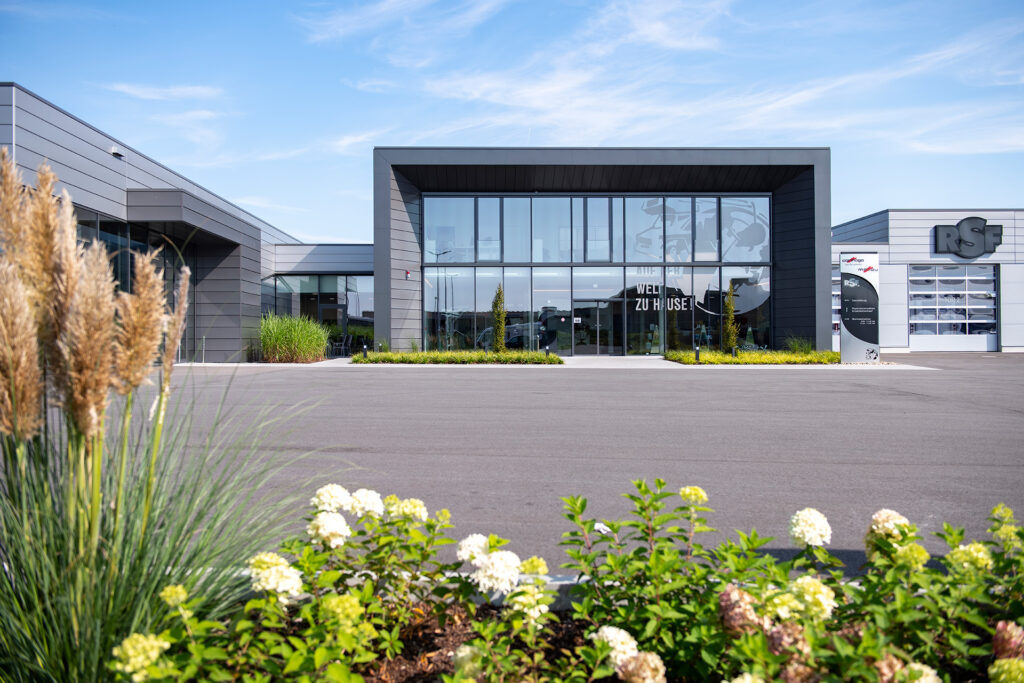 Die Generalplanung umfasste den Neubau eines neuen Betriebsstandortes für RSF Reisemobile. Trotz einer sehr kurzen Planungs- und Ausführungszeit lag der Anspruch auf einem durchgehend hohen architektonischen und technischen Standard. Das Gebäude vereint Verwaltung, Beratung, Verkauf, Werkstatt und Aufbereitung in einer klar strukturierten, funktional abgestimmten Einheit. Ziel war die Schaffung eines architektonisch ansprechenden und effizienten Gebäudes, das die Qualität und Identität der Marke RSF sichtbar macht und einen optimalen Ablauf im täglichen Betrieb gewährleistet. Ein zentrales Ziel war zudem ein nachhaltiges Energiekonzept: Der Neubau ist mit einer Photovoltaikanlage zur Eigenstromerzeugung und einer Pelletheizung zur umweltfreundlichen Wärmeversorgung ausgestattet.