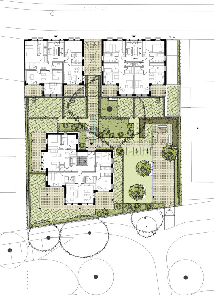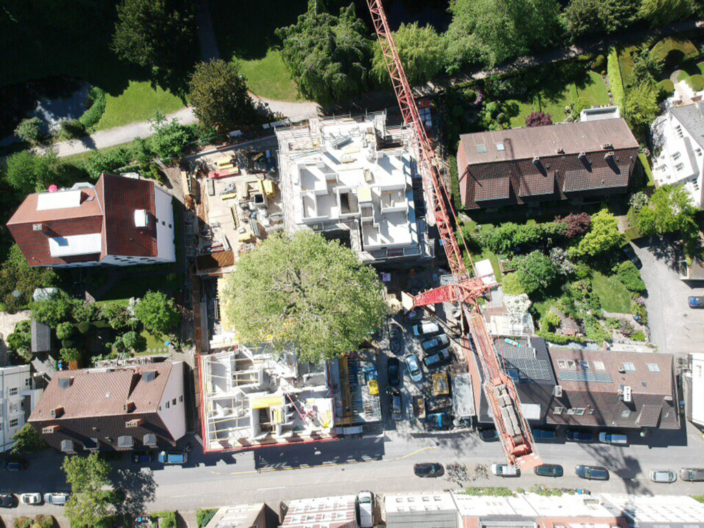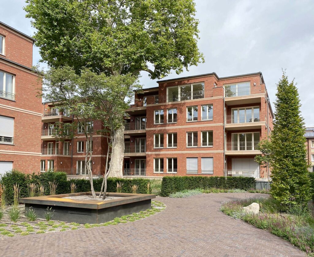 Im Kreuzviertel realisierten wir drei Wohnhäuser mit insgesamt 19 Wohneinheiten. Besonderes Augenmerk lag auf der verbindenden Tiefgarage, die um eine zentral stehende Platane herum angelegt wurde und die besondere Herausforderung der Integration von Natur und Bauwerk darstellte. In den Leistungsphasen 6 bis 8 übernahmen wir die Ausschreibung und Vergabe anspruchsvoller Bauleistungen, die Bauleitung sowie die Kostenkontrolle. Ein reger Austausch mit dem Bauherrn stellte sicher, dass sämtliche Bauabläufe präzise abgestimmt und die hohen gestalterischen und funktionalen Anforderungen umgesetzt werden konnten.